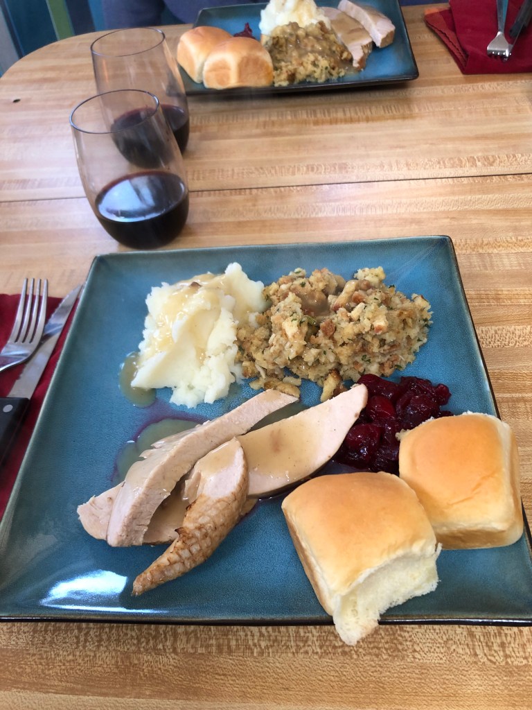 This was our second Thanksgiving in a row in Beaufort. There’s a Publix only a 15 minute walk away from the dinghy dock where we once again were able to buy the fixings for a traditional Thanksgiving dinner: