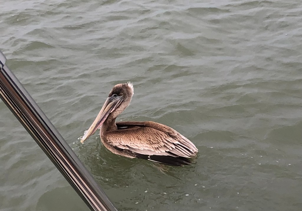 I think people must feed this pelican at the Bull Creek anchorage. He flew down, landed right by us, and hung around for awhile. We’ve never had that happen before. The different color gradations in his feathers was very cool to see up close.