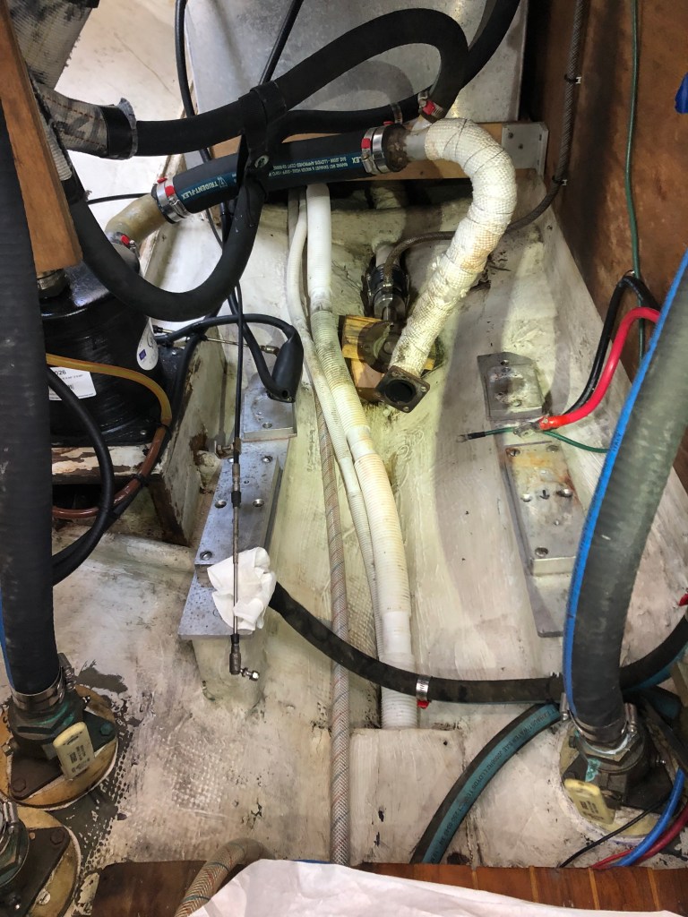 Thomas said he would be back on Wednesday, so we took advantage of the empty engine bay to do some cleaning and painting. We weren’t able to do that when we had the first Beta installed because the temperature was in the teens, and Jeff was still recovering from being in the hospital. After an afternoon of work, we had a shiny, white engine bay!