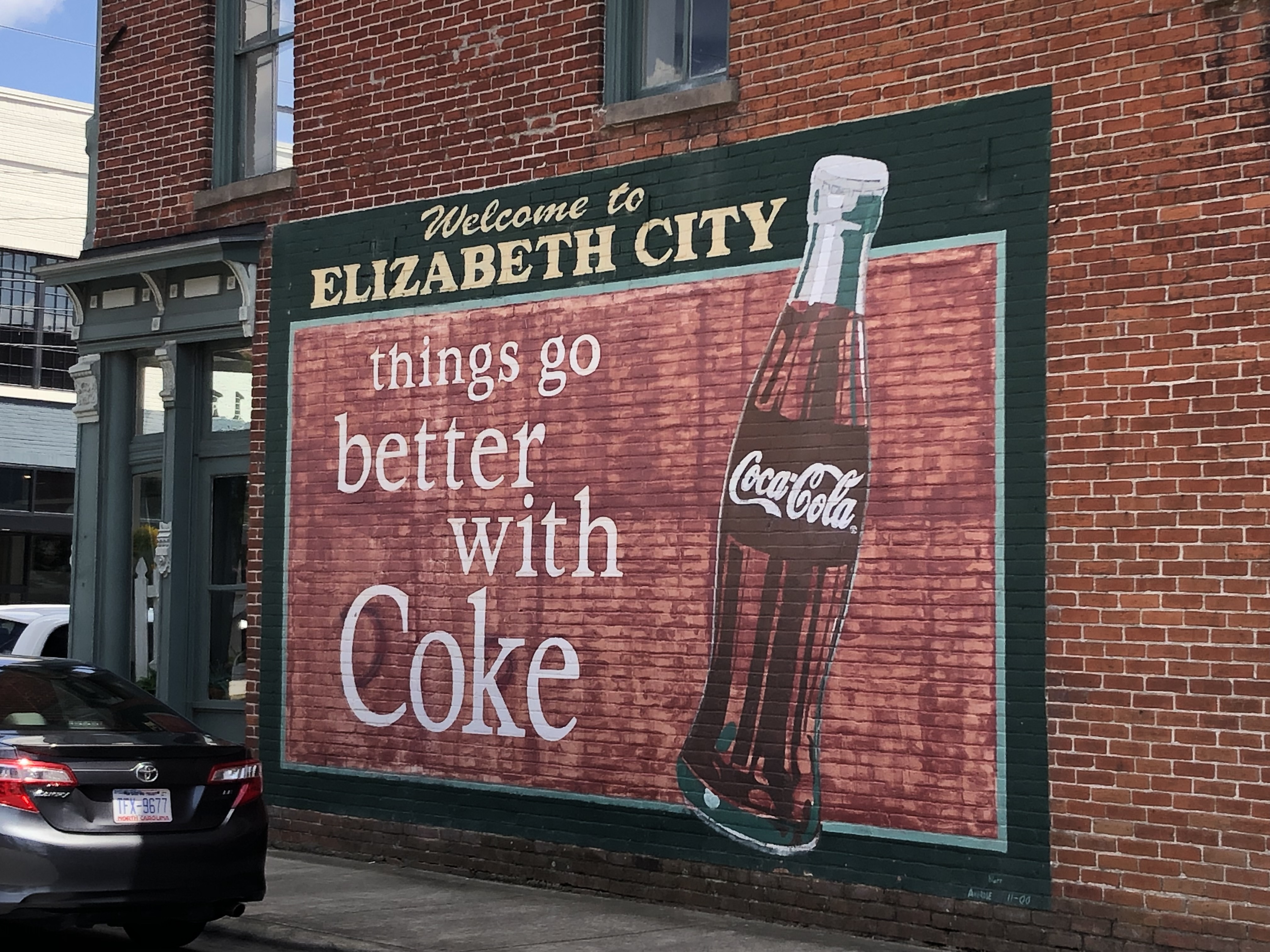 Since we started making this trip in 2018, Elizabeth City has added a brewery and several restaurants and coffee shops. A section of restaurants are found along Pailin’s Alley, where you can dine in the alley under the lights.