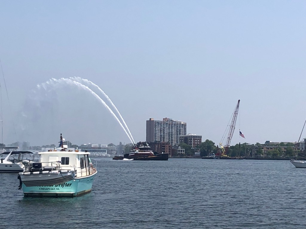 The Tall Ships parade started with this tug spraying its hoses. It’s always fun to see how high the water can go!