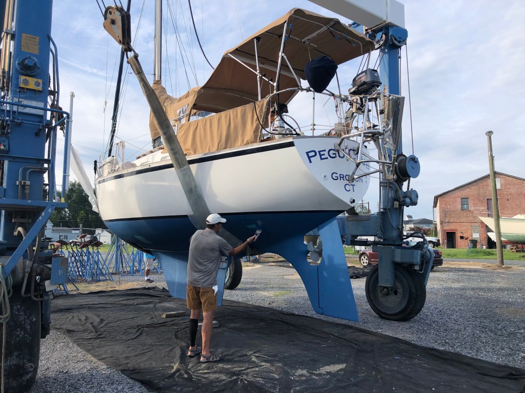 We also hauled out the boat at the Yacht Maintenance Company in town. We had a list of things to take care of including preventative maintenance on our dripless shaft seal by replacing the bellows a year before what is recommended. We weren’t sure when we would be hauling out again, and we did NOT want that part to fail. Basically, water would start gushing into the boat and we’d be lucky to avoid sinking. Better safe than sorry when it comes to that particular maintenance item. Between the PSS, new bottom paint, and several coats of wax that Jeff put on, Pegu Club was spiffy and ready to go by the time she went back into the water.