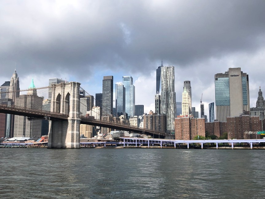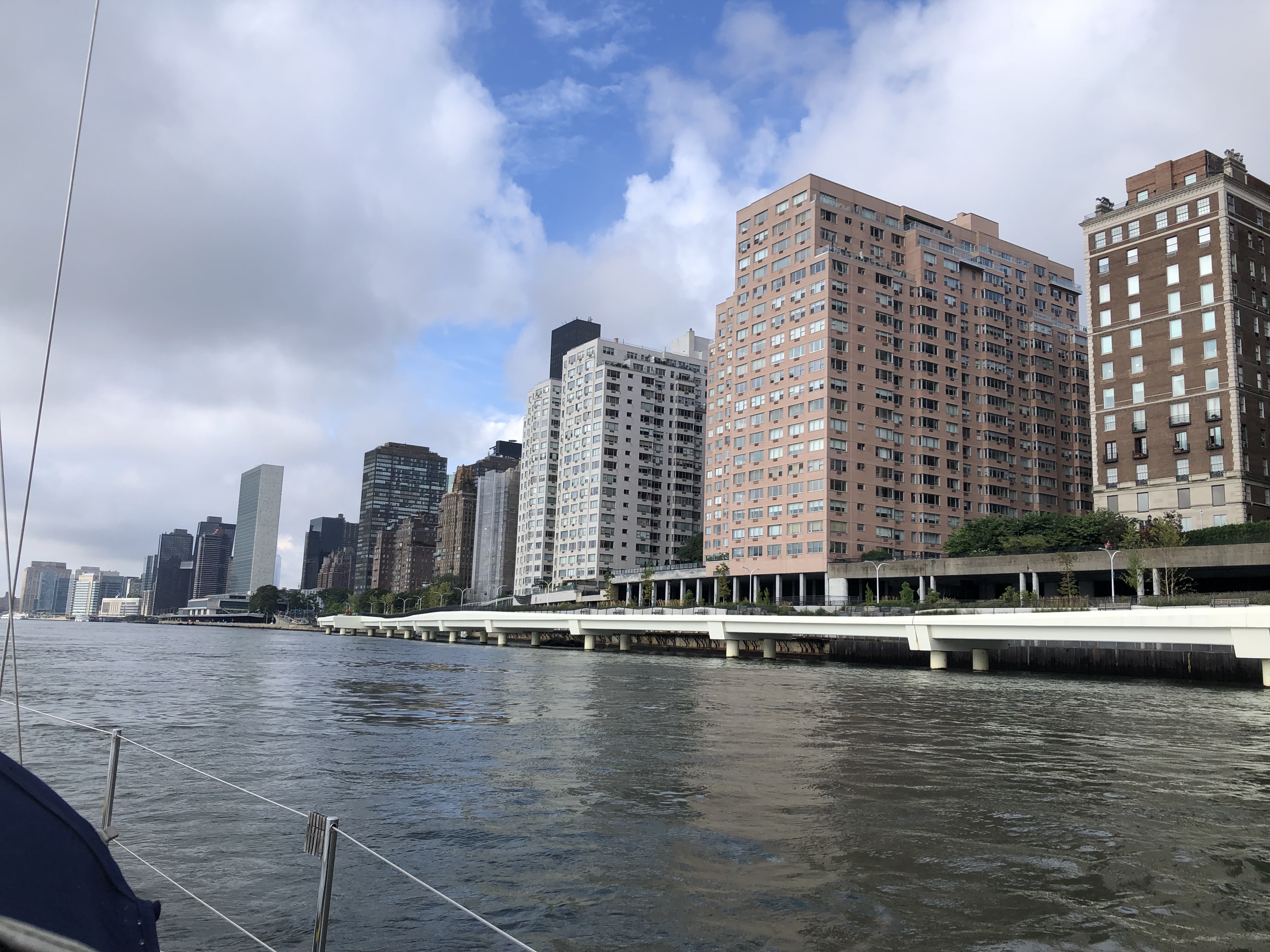 Jeff W is ready to go through Hell Gate.Getting ready to head down the East River.Seeing the Empire State Building is always fun.Lots of ferry traffic. These guys are completely professionals. No concerns about them whatsoever.The iconic Brooklyn Bridge and Manhattan skyline. This leg of the trip never gets old.