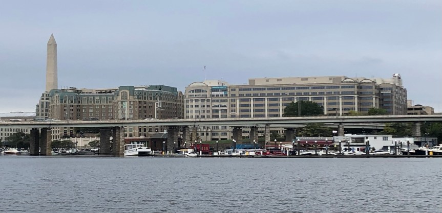 Jeff W is not a city person but he had not been to D.C. before. We told him he could spend a week waiting out the weather at anchor in Mill Creek near Reedville, which would be perfectly protected, or he could head up the Potomac with us. He chose to come along – good call!
