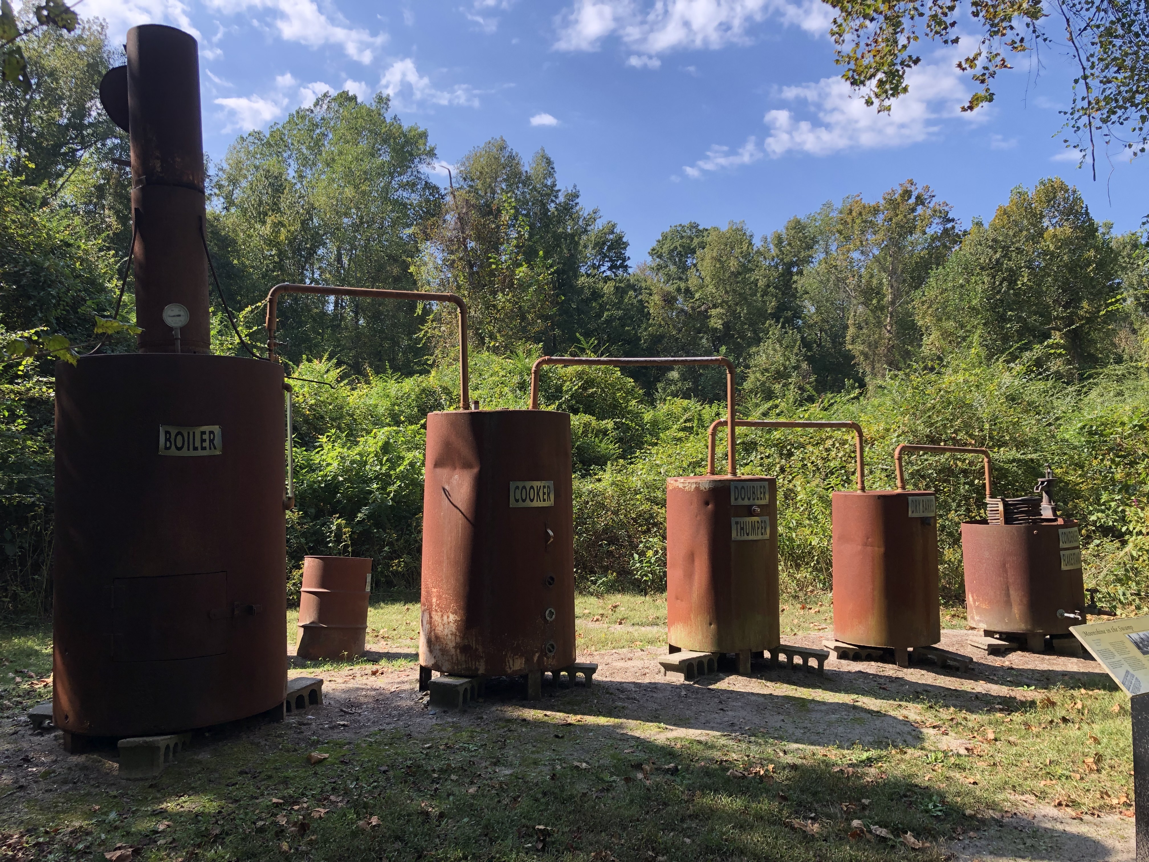 A replica liquor still on one of the trails.Pegu Club and Infinity rafted up together at the Visitors Center.