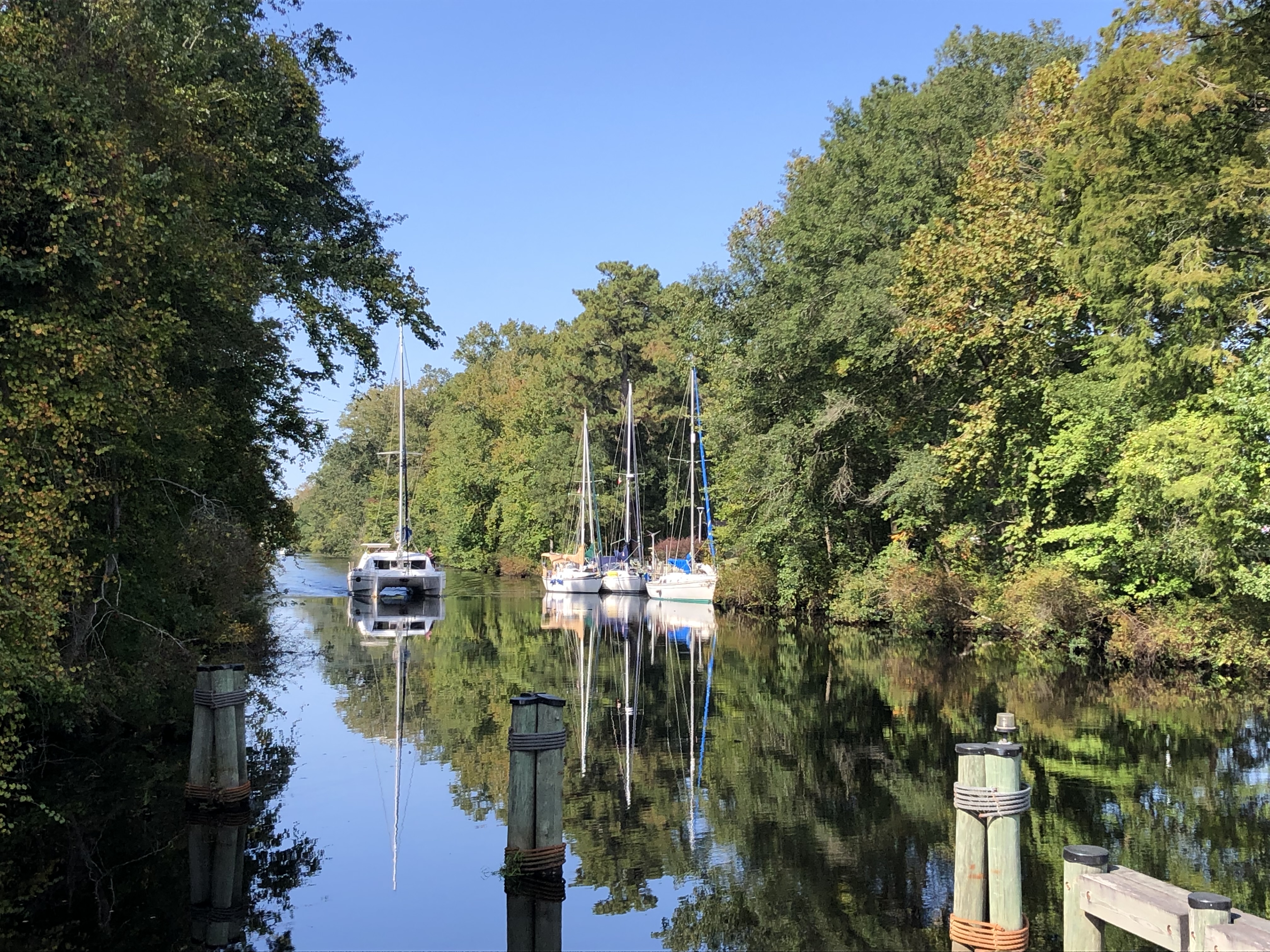 From the Dismal Swamp we made a stop for several days at Lamb’s Marina, a very basic but friendly place near Elizabeth City, NC. We were leaving our boats there so we could go to Jeff’s cardiology appointment in Annapolis, and Jeff W could make a surprise drive up to his home in Massachusetts to surprise his wife. She was VERY happy!