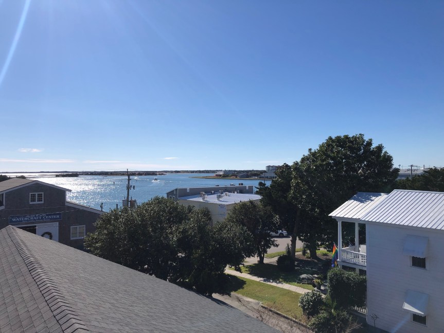 Our friends on Mer du Jour were also there (who we had last seen in Annapolis), so we were able to get together with them again which is always a treat. We also went to the North Carolina Maritime Museum (a first visit for the three of us) which was VERY interesting. The docent working there took a shine to us, and gave us a special treat by taking us to a lookout on the roof which had a wonderful view!