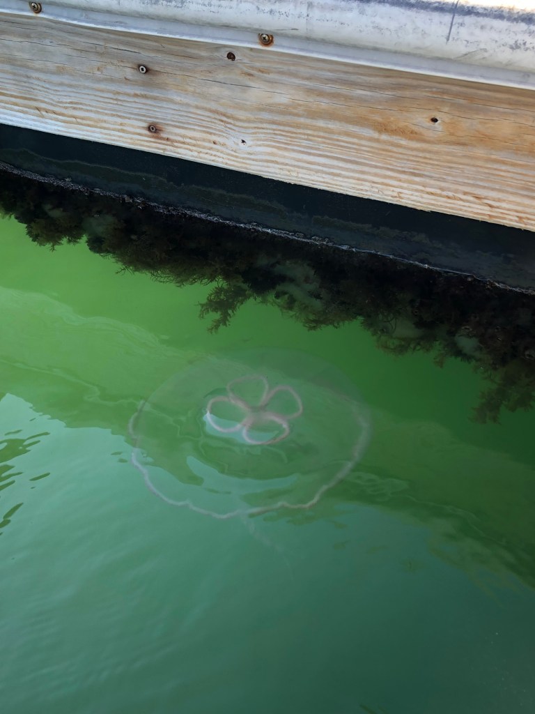 Running for the dinghy, they discovered that the gate was closed and locked. Uh-oh. They tried to find a different way to get around the fence to the dinghy dock with no luck. By now they were soaking wet with no way to get to the dinghy, so they called the Port Washington Water Taxi (who runs the moorings) and the driver was kind of enough to pick them up at another spot, take them to the dinghy, and then tow it back so the two Jeffs could stay dry on the taxi. Now that’s customer service! We do love Port Washington!