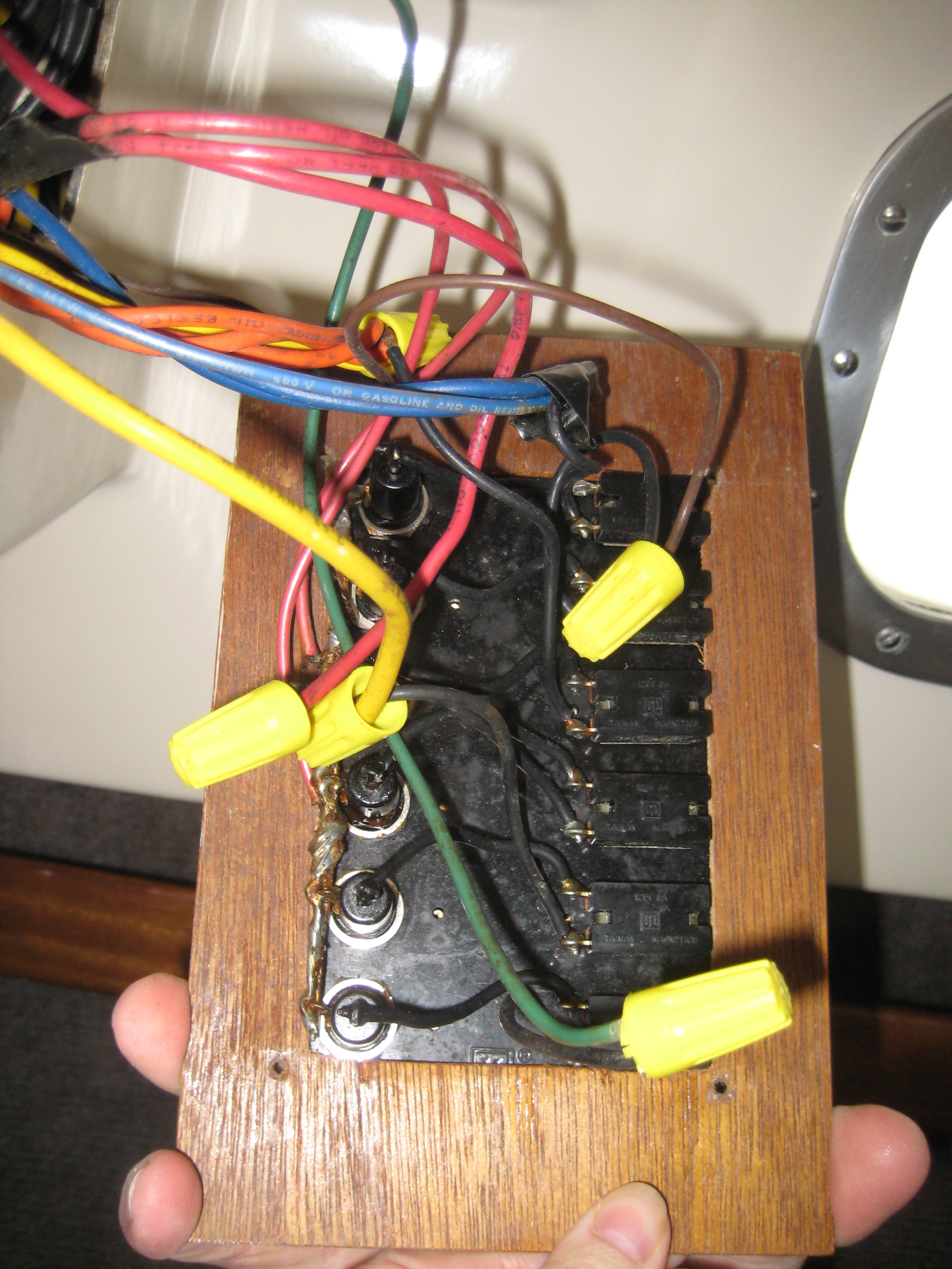 Down to the marina we went. We climbed aboard Pegu Club to get to work. This was going to be easy. Then we opened up the panel.