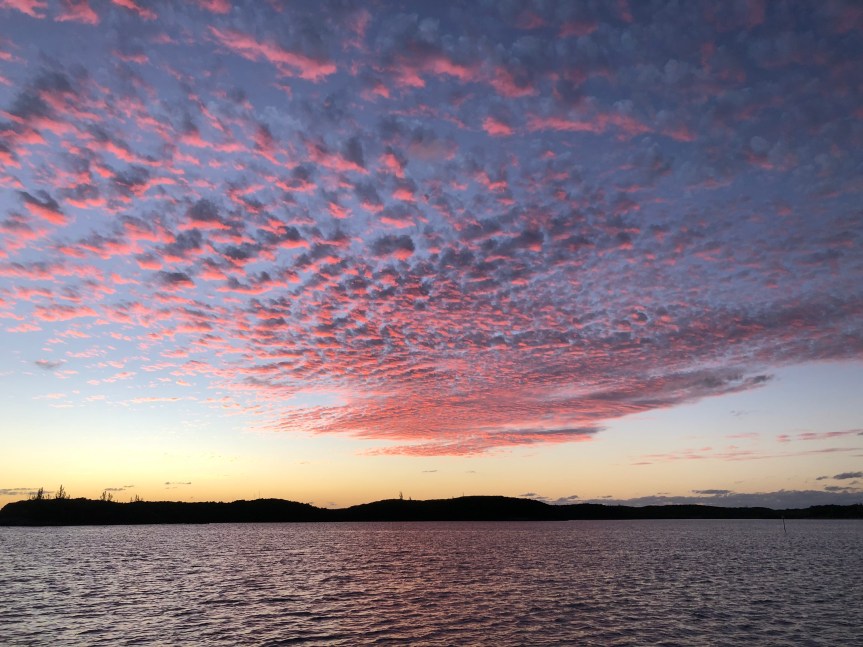 Anyway, we had the option of motoring into headwinds to Rock Sound for an upcoming blow, or stay put at Hatchet Bay and then sail to Rock Sound. Guess which one we picked?