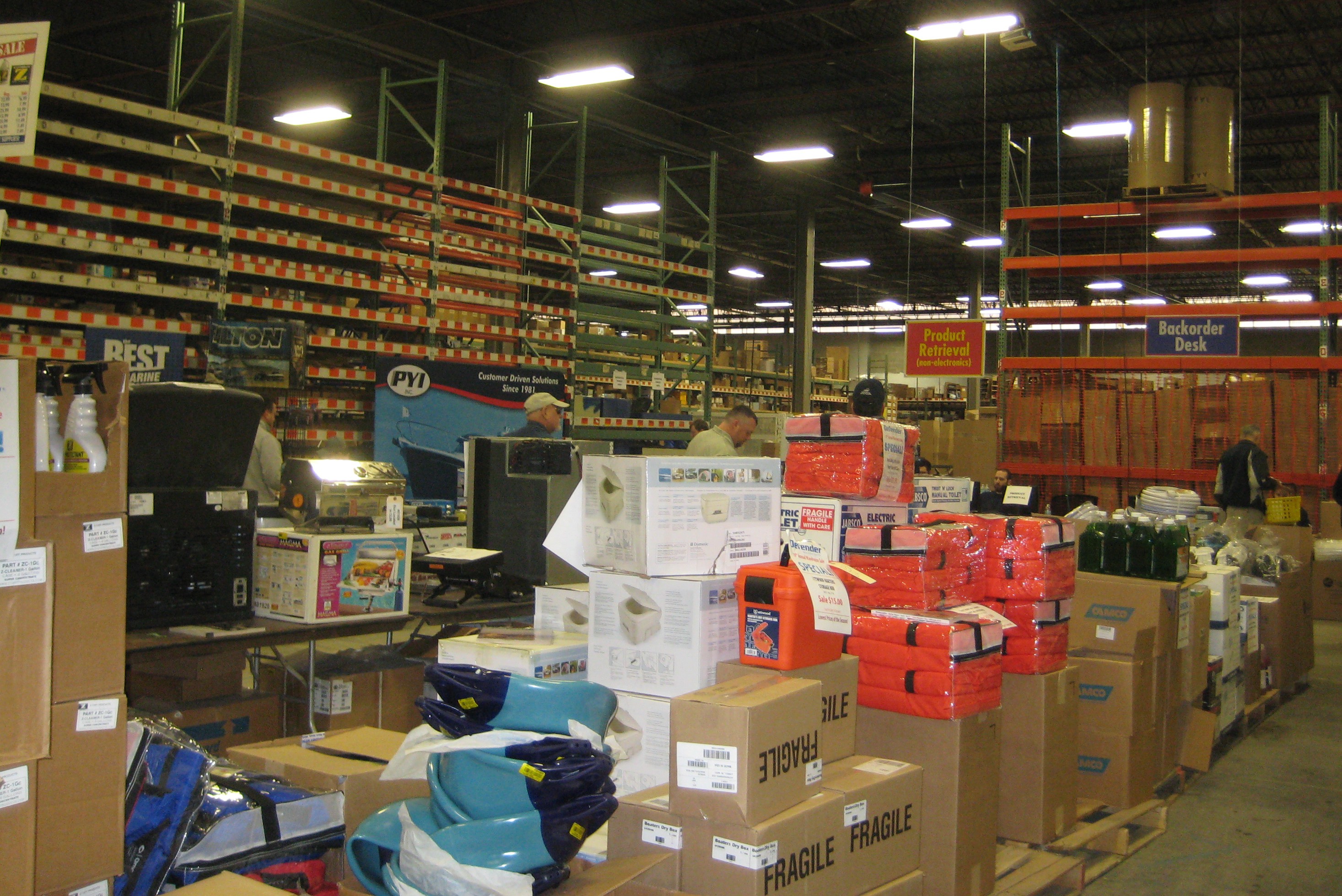 The warehouse sale runs from Thursday through Sunday, and those four days represent 20% of Defender’s annual sales. Their already-low prices are discounted at least 10% further, and there are many blowout deals. Tons of vendors are available to answer questions about their products, similar to what you would find at a boat show. Coming at the end of winter, the place is mobbed with boaters who can’t wait to start the season. It has the feeling of the first day of school – everyone is excited and seeing people they haven’t seen all winter. The Rotary club even sells hotdogs and chips from a cart.