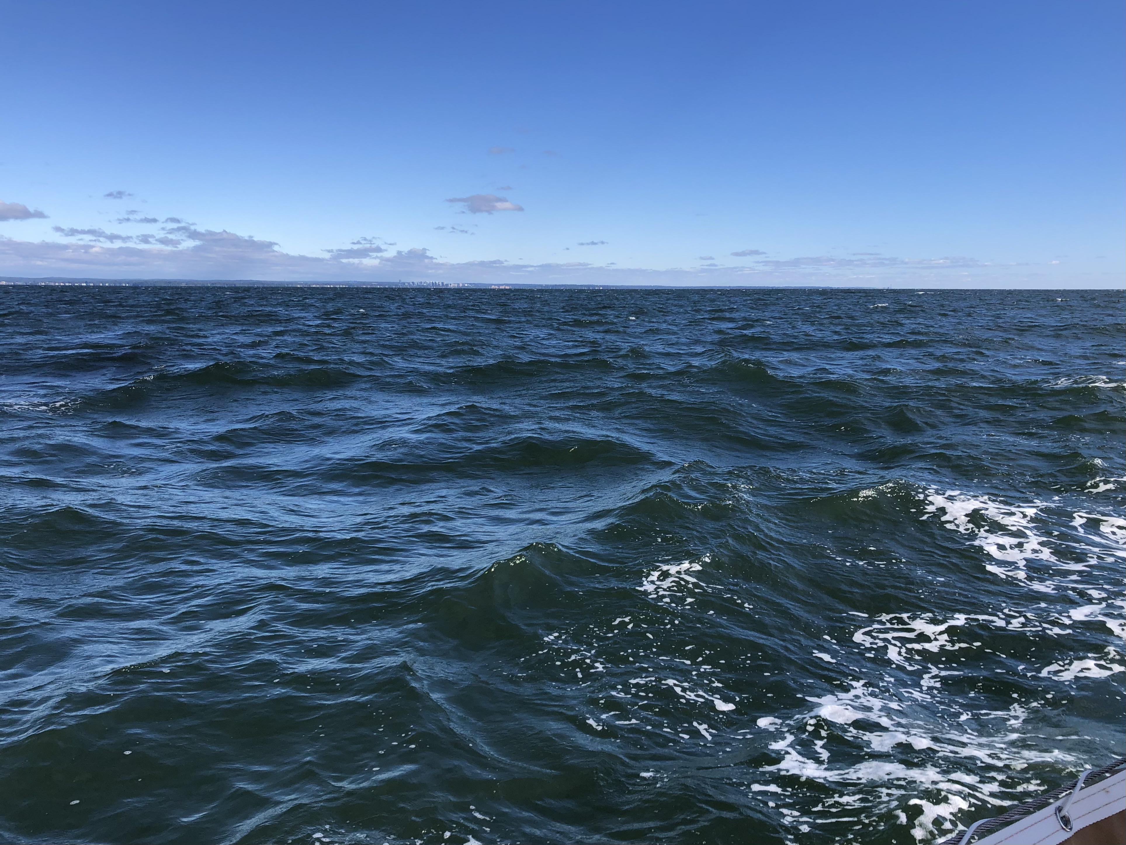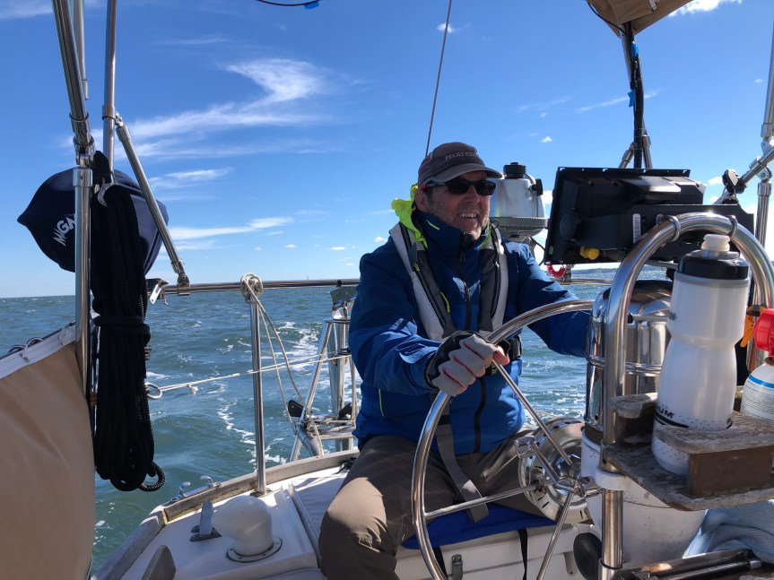 We filled up our external dinghy fuel tank with three gallons, waited for slack, took a deep breath, and went for it. I can’t begin to describe how relieved we both were once we were clear of the marina, and we heavily praised Big Red for hanging in there!